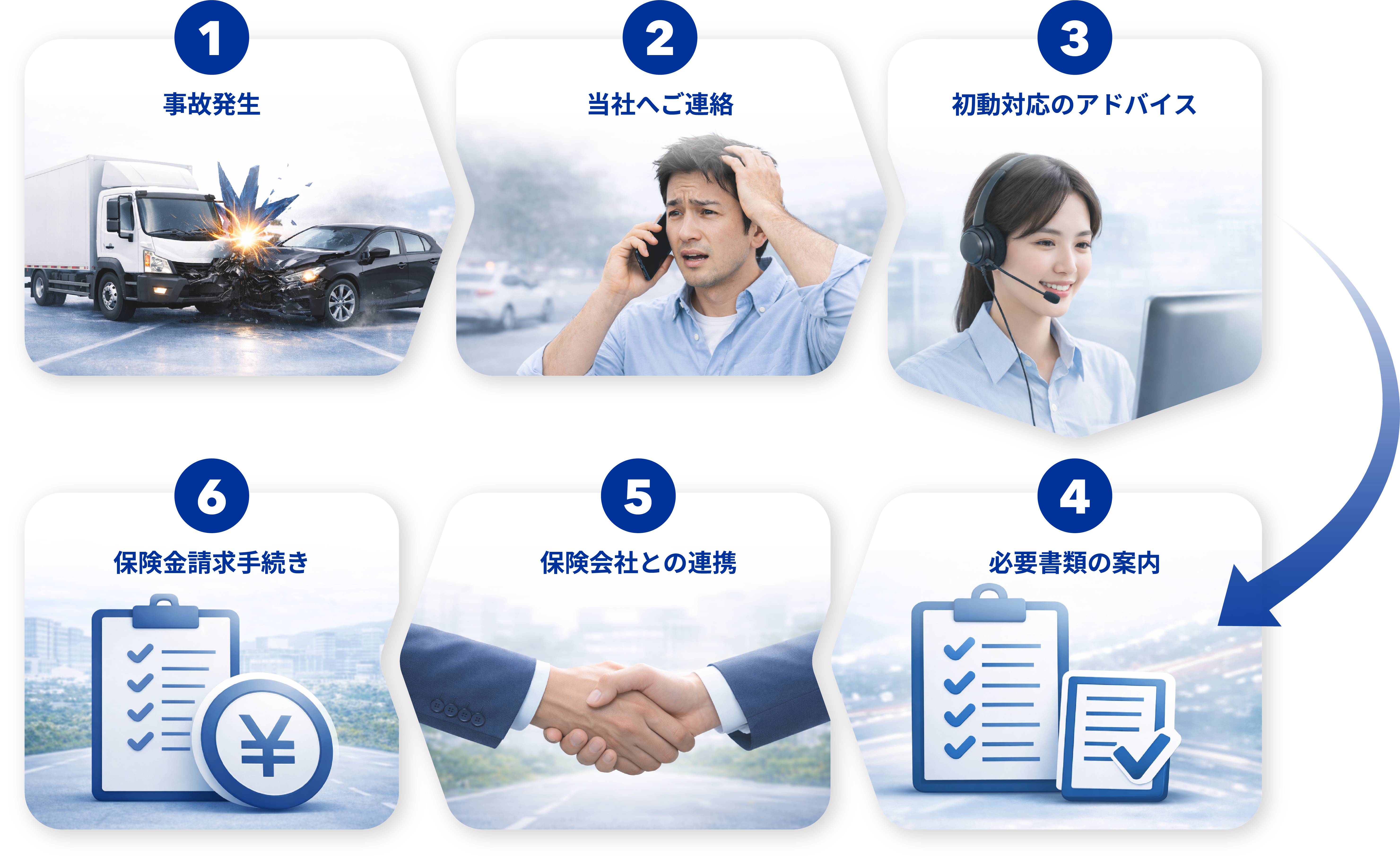 事故時の初動対応から書類準備、保険会社連携、保険金請求までを